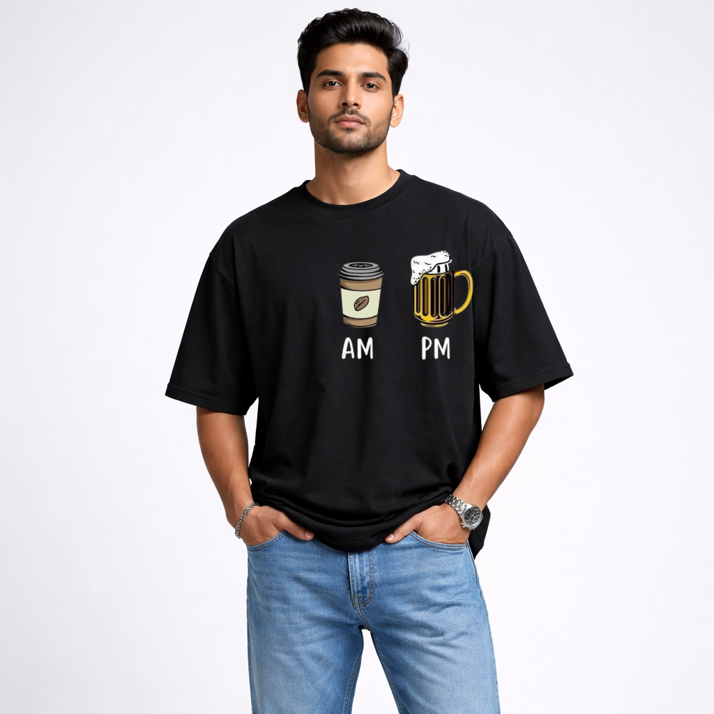 AM to PM Vibes Black Oversized T-Shirt for Men