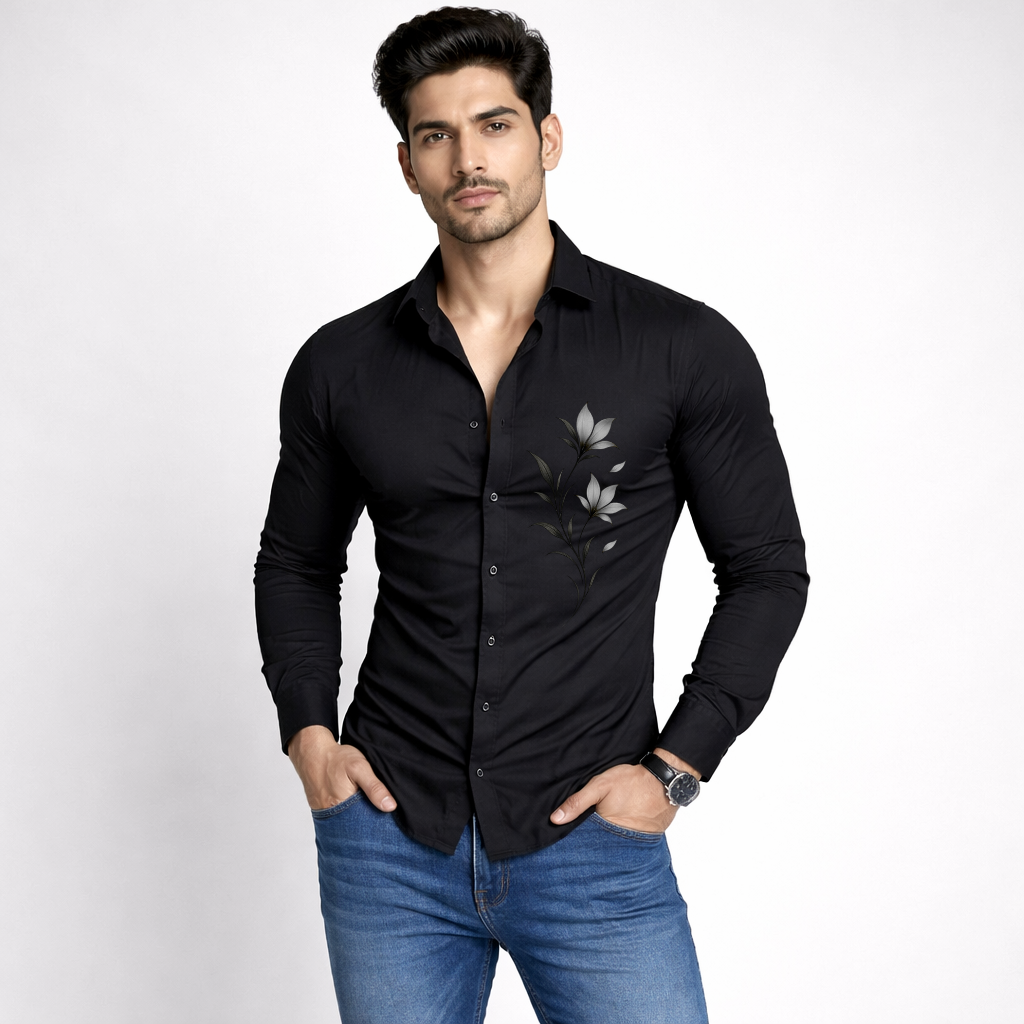 Step up your fashion game with this black floral printed shirt for men, designed to exude a stylish and contemporary vibe. Whether you’re heading out for a casual gathering or dressing to make a statement, this versatile shirt is the perfect choice to blend elegance with character. Its sleek black fabric adorned with detailed floral prints ensures you stand out effortlessly while staying timelessly modern.