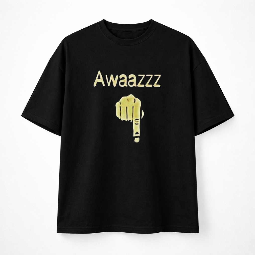 Get ready to make heads turn with the bold “Awaazzz” graphic t-shirt that embodies individuality and confidence. Add it to your collection now and redefine casual streetwear with your own unique statement.