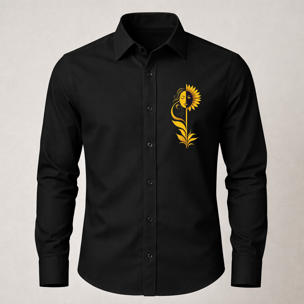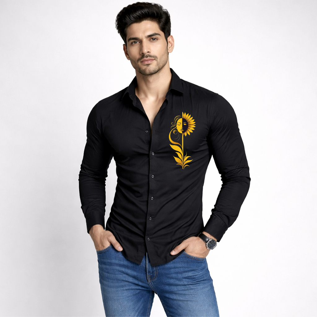 Make a bold statement with this black shirt featuring exquisite floral prints. Its unique design offers a perfect blend of sophistication and modern fashion, making it an ideal addition to your wardrobe. Whether you’re stepping out for a casual outing or dressing up for an evening event, this shirt ensures you stand out with effortless elegance.