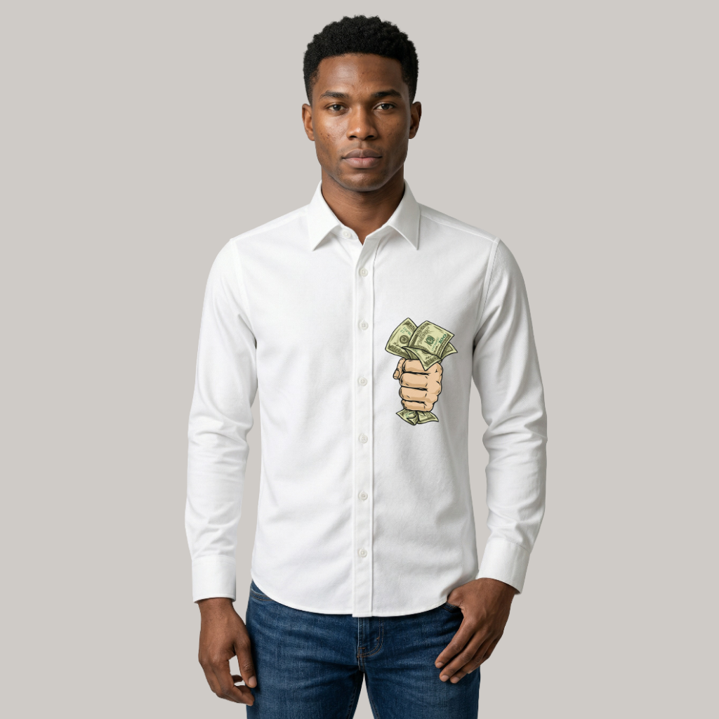 Step into the world of fashion with our stylish shirt featuring a bold, unique money-in-hand design. This one-of-a-kind piece stands out as a symbol of success, hustle, and unapologetic confidence. Whether you’re dressing for a casual outing or looking to make a statement, this shirt elevates your look effortlessly.