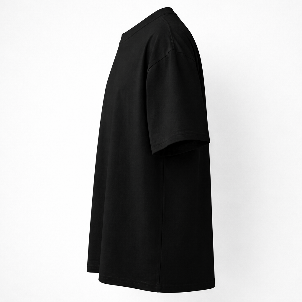 Crafted using high-quality fabric, this oversized black tee ensures supreme softness and durability to keep you comfortable all day. The breathable material allows for maximum airflow, making it perfect for every season. Designed for those who value comfort without compromising on aesthetics, this tee is truly a wardrobe essential.